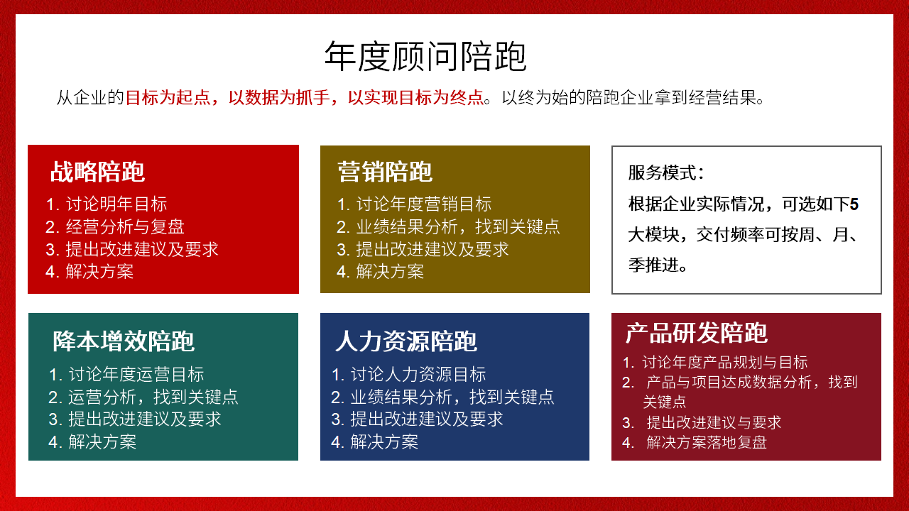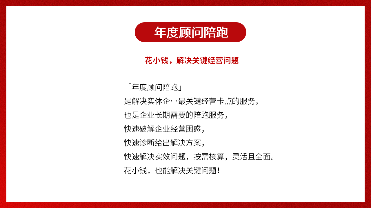 破解經(jīng)營困惑,解決關(guān)鍵卡點(diǎn),以目標(biāo)為起點(diǎn),陪跑企業(yè)拿到更好經(jīng)營結(jié)果