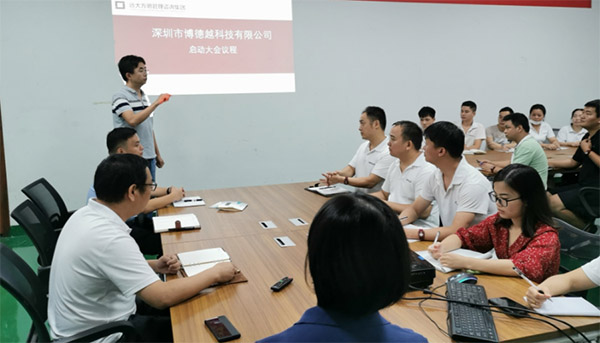 項目啟動會上,博德越王總表示,公司現(xiàn)在發(fā)展越來越快,需要更優(yōu)的管理模式,現(xiàn)在公司邀請遠大方略的老師來做指導(dǎo),將對精益生產(chǎn)及交付管理系統(tǒng)一改到底。改善前期是非常痛苦的,但是為了公司更好的發(fā)展,痛苦也要改。遠大方略在精益生產(chǎn)和交付改善等方面都是非常專業(yè),所有人都要無條件配合遠大的老師做好此次改善項目。