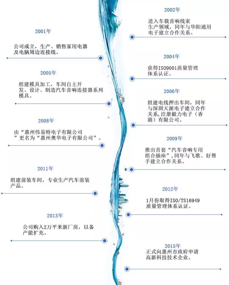 惠州奧華電子有限公司成立于2001年,公司占地面積10000平方米,建筑面積12000平方米,員工600余人。擁有一批優(yōu)秀的研發(fā)、技術(shù)、生產(chǎn)管理人才。專業(yè)開發(fā)、生產(chǎn)、銷售汽車插座、線束、精密連接器等汽車部件。具有汽車連接器全程制造能力,包括精密模具、塑膠成型、五金沖壓、電線電纜、零部件及線束生產(chǎn)。公司產(chǎn)品已廣泛應(yīng)用于汽車音響、空調(diào)、防盜器、GPS導(dǎo)航、天窗、倒車?yán)走_(dá)、電動(dòng)門窗、儀表等汽車電子行業(yè),并與國內(nèi)外電子企業(yè)建立了良好的合作伙伴關(guān)系。