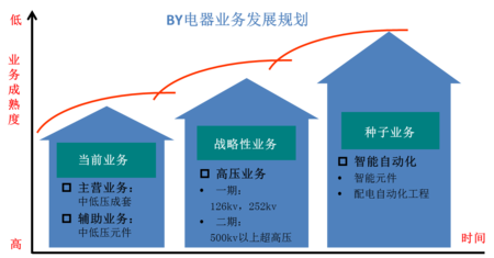 1、BY電器需以中低壓成套和中低壓元件為當(dāng)前主營(yíng)業(yè)務(wù),并確立以高壓為戰(zhàn)略性業(yè)務(wù),以智能自動(dòng)化為種子業(yè)務(wù)的業(yè)務(wù)規(guī)劃,讓BY電器未來可持續(xù)性發(fā)展。