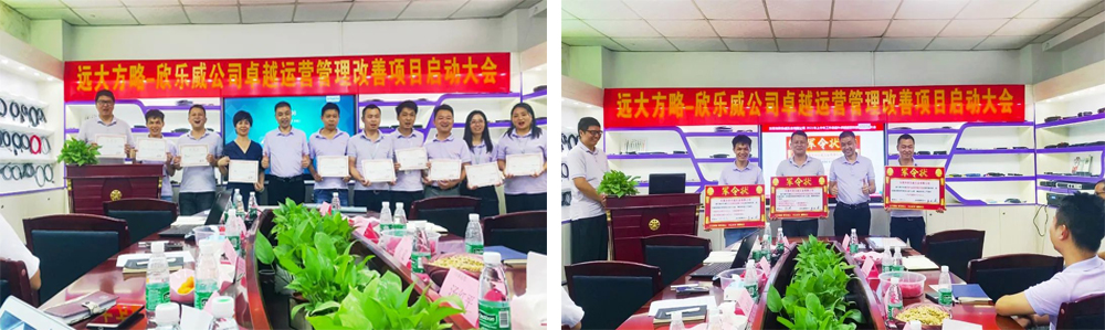 為了保證集成運營管理項目更好執(zhí)行落地,啟動會上易總為遠大方略項目組頒發(fā)了授權(quán)書,授予項目組人事考核任免、薪資調(diào)整等權(quán)利,為集成運營改善項目組成員頒發(fā)任命書,同時各部門簽署軍令狀,希望大家齊心協(xié)力共同推進此次項目順利進行。