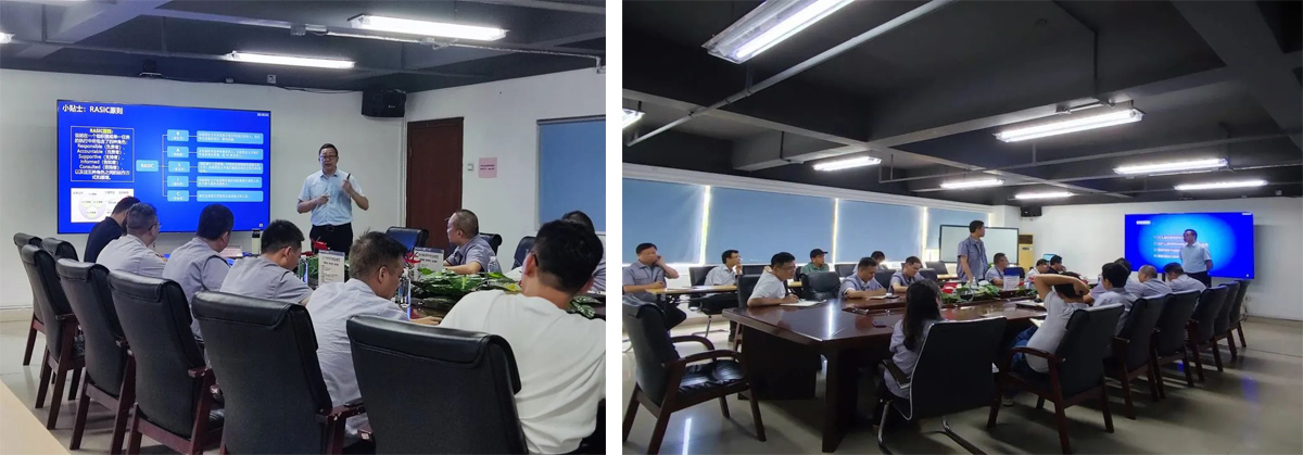 在項目推進的過程中,遠大方略項目組老師不僅下到生產(chǎn)車間手把手教導,而且在現(xiàn)場輔導之余,也開展各類精益培訓,在實際操作之前,讓員工先了解理論知識。在項目進行前期開展“快速切換”“工作指導”主題培訓,有效提升生產(chǎn)效率和靈活性;進行《稽核管理》培訓,讓員工能夠及時發(fā)現(xiàn)問題、暴露問題,讓問題無處可藏,幫助公司高層加強對企業(yè)的控制力,提升執(zhí)行力。