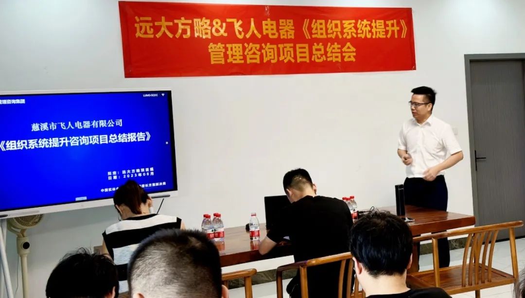 慈溪市飛人電器有限公司(以下簡(jiǎn)稱“飛人電器”)攜手遠(yuǎn)大方略《組織系統(tǒng)提升》咨詢項(xiàng)目圓滿結(jié)束。梳理公司戰(zhàn)略目標(biāo),明確組織架構(gòu)職責(zé),增強(qiáng)各部門協(xié)同,提升運(yùn)營(yíng)管理效率,助推企業(yè)高速高質(zhì)量發(fā)展。