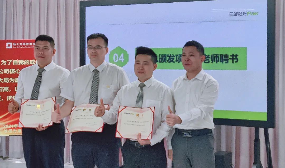 隨后,唐總為遠(yuǎn)大方略項(xiàng)目組老師頒發(fā)聘書(shū),聘請(qǐng)項(xiàng)目組老師為此次項(xiàng)目改善的指導(dǎo)老師,全面推動(dòng)此次項(xiàng)目開(kāi)展。