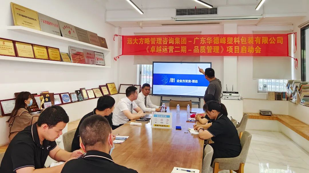 近日,廣東華德峰塑料包裝有限公司(以下簡(jiǎn)稱“華德峰”)再度攜手遠(yuǎn)大方略啟動(dòng)《卓越運(yùn)營二期-品質(zhì)管理》咨詢項(xiàng)目,建立科學(xué)有效的質(zhì)量管理體系,提升企業(yè)質(zhì)量管理水平,提高產(chǎn)品質(zhì)量,提高客戶滿意度,從而贏得市場(chǎng)份額。