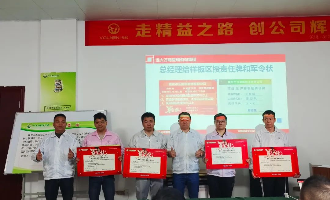 此次贛州沃能通過為期近半年的培訓(xùn)+輔導(dǎo),整體改善效果顯著。早會進(jìn)步明顯,形成了評分機(jī)制,在內(nèi)部營造了比、學(xué)、趕、幫、超良好的工作氛圍;班組長掌握了管理要訣,提升了管理水平;工作教導(dǎo)方法標(biāo)準(zhǔn)化,并落實(shí)到每位一線管理者;修訂了《整理整頓執(zhí)行標(biāo)準(zhǔn)》和《6S管理手冊》,沉淀了一套適合企業(yè)的金牌班組培養(yǎng)方法。