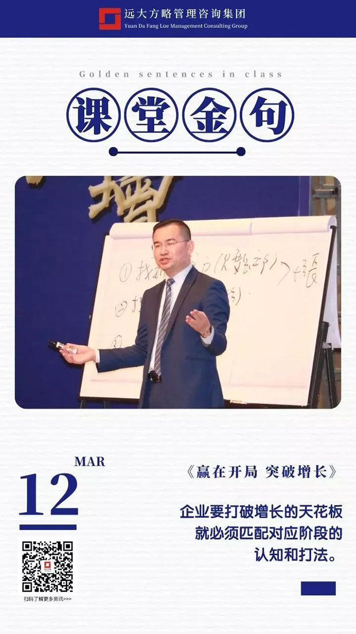課堂上雷老師講課循序漸進,通過問題的形式逐步引發(fā)學員的思考,讓每位學員都能有所感有所悟,回到企業(yè)之后能夠落到實處,做到真正的幫企業(yè)解決問題,這也正是遠大方略的定位,成為中國實體企業(yè)實效的持續(xù)增長方案解決商,遠大方略也一直秉承初心努力踐行!