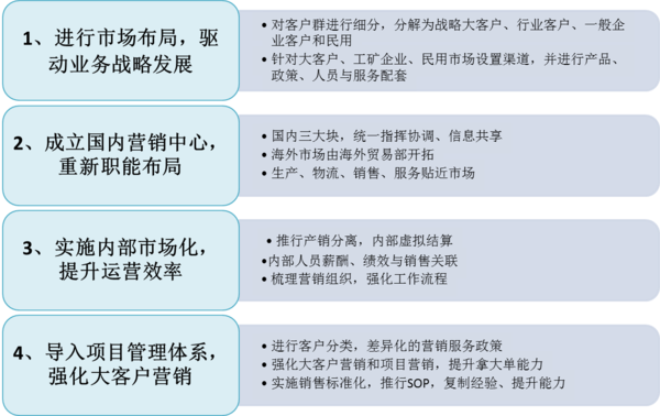 •市場(chǎng)戰(zhàn)略不清晰,渠道布局混亂•大客戶和大項(xiàng)目營(yíng)銷能力不強(qiáng)•內(nèi)部對(duì)市場(chǎng)和銷售部門響應(yīng)慢
