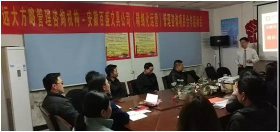 2019年4月,安徽百盛文具有限公司(以下簡稱“百盛文具”)攜手遠大方略遠大方略管理咨詢公司啟動《精細化運營》管理改善項目。遠大方略項目總監(jiān)程波老師,項目組長唐光輝老師入駐百盛文具。通過與百盛文具公司核心團隊的探討,本次咨詢項目主要圍繞會議模式變革、提升庫存管理水平、組織建設、交付系統(tǒng)、效率提升等內(nèi)容展開,達到促進團隊成長、降本增效的管理變革目的。