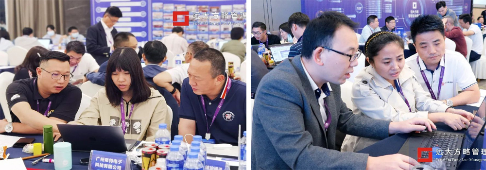課程中,老師全程開啟巡場(chǎng)模式,輪流到各小組輔導(dǎo)學(xué)員制定適合自己企業(yè)的經(jīng)營(yíng)分析報(bào)告、業(yè)務(wù)報(bào)告、部門年度經(jīng)營(yíng)計(jì)劃書、企業(yè)戰(zhàn)略地圖等實(shí)用報(bào)表。還為大家提供了差距分析、SWOT分析、PESTEL分析、商業(yè)畫布、波特價(jià)值鏈分析等實(shí)用工具和使用方法。幫助現(xiàn)場(chǎng)企業(yè)家建立了貫穿戰(zhàn)略制定和執(zhí)行全流程的企業(yè)經(jīng)營(yíng)思維,收獲了一套戰(zhàn)略落地執(zhí)行的系統(tǒng)方案。