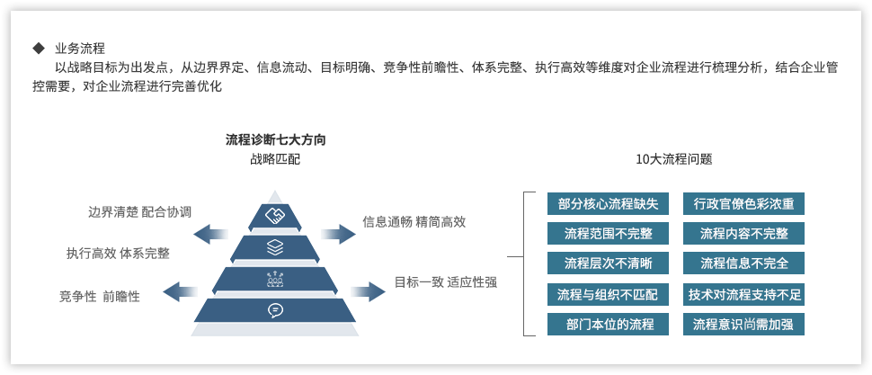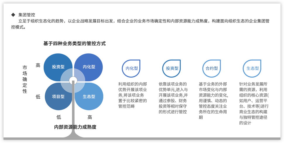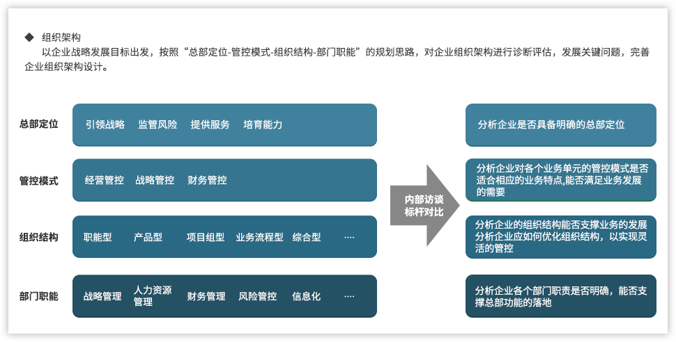遠大方略認為,為了強化國有企業(yè)組織管控能力,企業(yè)需要以戰(zhàn)略發(fā)展目標為出發(fā)點,從組織架構(gòu)、集團管控、業(yè)務(wù)流程、風(fēng)險管理、財務(wù)管控等各個方面進行全面提升,構(gòu)建系統(tǒng)全面的管控體系。