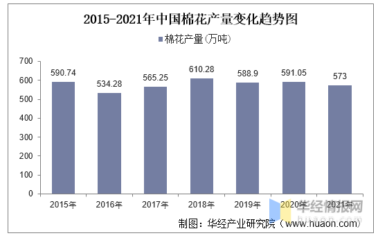 棉花是紡織行業(yè)最重要的原材料之一,目前國內(nèi)外棉花供給壓力均在高位,棉價或?qū)⒊掷m(xù)向上。據(jù)國家統(tǒng)計局?jǐn)?shù)據(jù),2021年全國棉花產(chǎn)量達(dá)573萬噸,較2020年減少18萬噸。