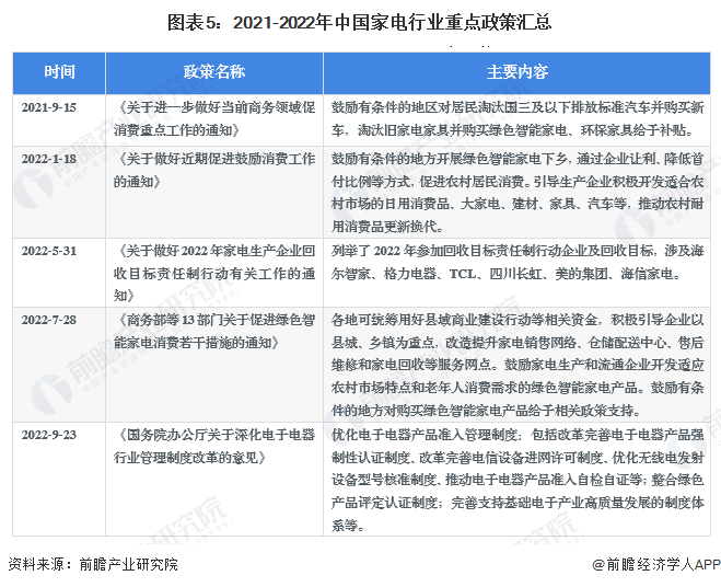 近年來,多項面向家電產(chǎn)品的國家產(chǎn)業(yè)引導(dǎo)政策出臺,給家電市場帶來新一輪引導(dǎo)和激勵。其政策的主要方向是鼓勵和引導(dǎo)綠色家電消費和以舊換新家電服務(wù),并積極開展消費扶貧帶動貧困地區(qū)產(chǎn)品銷售,推動智能家電產(chǎn)品銷售等。家電行業(yè)重點政策匯總?cè)缦拢?/p>