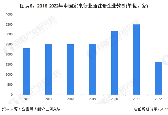 1、家電企業(yè)注冊數(shù)量:2021年達到3503家