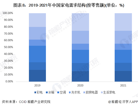 3、家電銷售結(jié)構(gòu):2021年彩電、生活家電比重上升