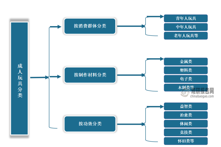 成人玩具按消費(fèi)群體分類,成人玩具可分為青年人玩具、中年人玩具、老年人玩具等;按制作材料分類,可分為金屬類、塑料類、電子類、木制類等;按功效分類,可分為益智類、治愈類、休閑類、競(jìng)技類、懷舊類等,其中主要以休閑、益智為主。
