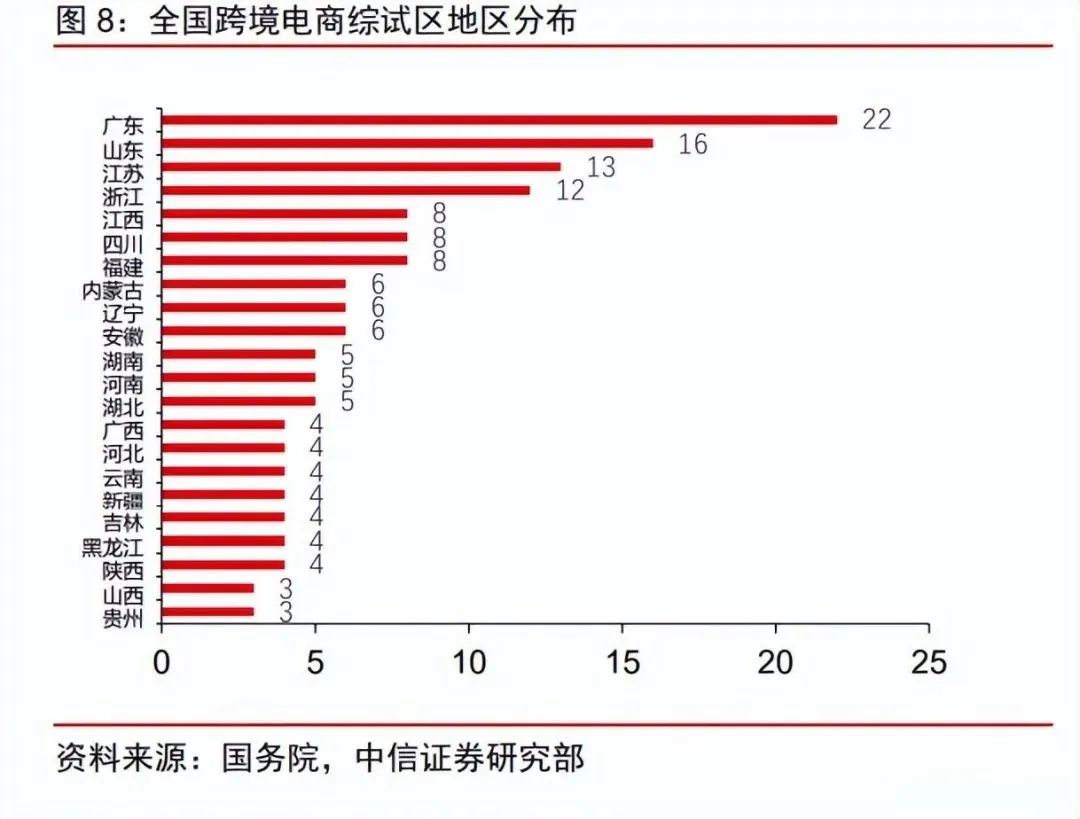 政策利好頻出,大力支持跨境電商行業(yè)發(fā)展。2020 年受疫情影響以來,跨境電商成為推動我國外貿(mào)轉型升級、打造新經(jīng)濟增長點的重要驅動,國家在海外倉建設、人才培養(yǎng)、 企業(yè)權益保護、金融服務、退(免)稅等方面密集出臺相應政策,全方位支持跨境電商發(fā)展。同時,2022 年底的中央經(jīng)濟會議也提出支持平臺企業(yè)在國際競爭中大顯身手。在政策的大力支持下,跨境電商行業(yè)有望維持高景氣。根據(jù)《“十四五”商務發(fā)展規(guī)劃》,到 2025 年,跨境電商等新業(yè)態(tài)的外貿(mào)占比將提升至 10%。