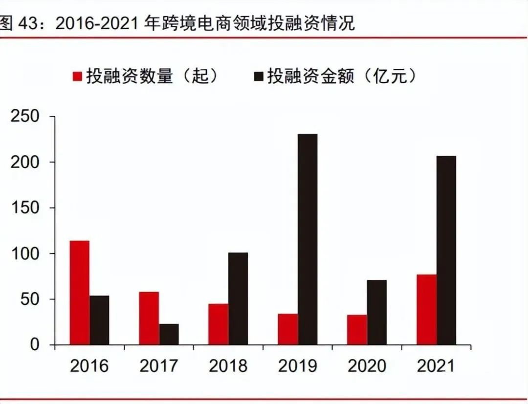 服務生態(tài)完備,全鏈路賦能跨境賣家。隨著跨境電商行業(yè)整體成熟度和專業(yè)度的提升, 以及行業(yè)競爭的加劇,對賣家的綜合運營能力提出了更高的要求,跨境支付、代運營、營銷推廣等跨境電商服務商應運而生。根據(jù)艾瑞咨詢,2021 年跨境電商領域投融資總金額 達 207 億元,其中服務商領域融資事件/規(guī)模占比分別為 65%/34.5%??缇畴娚谭丈躺鷳B(tài)的繁榮,有助于增強跨境賣家面向海外市場的競爭力。