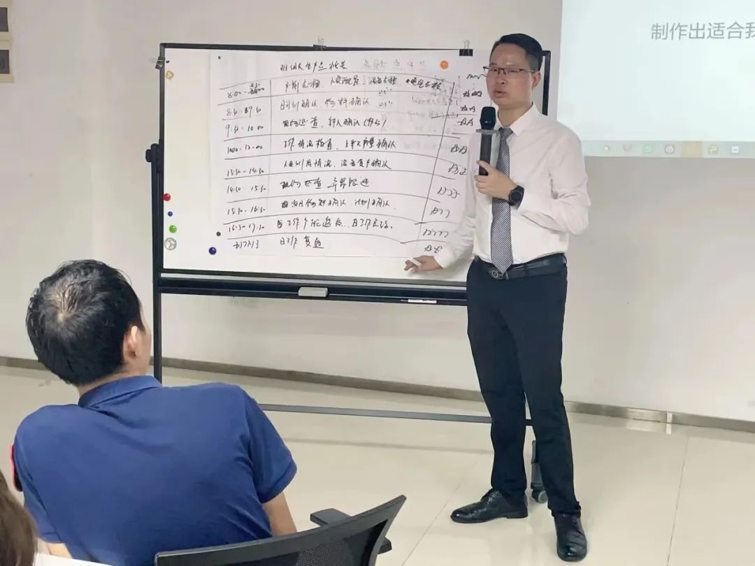 老師首先從企業(yè)會(huì)議規(guī)劃入手,強(qiáng)調(diào)了早會(huì)的重要性,介紹了早會(huì)的八個(gè)步驟,主要包括會(huì)前準(zhǔn)備、開(kāi)場(chǎng)、表?yè)P(yáng)與批評(píng)、昨日總結(jié)、今日安排、要點(diǎn)提示、安全提醒以及總結(jié)與鼓舞士氣,針對(duì)每個(gè)步驟具體內(nèi)容以及注意事項(xiàng)都進(jìn)行了詳細(xì)講解。為更好幫助班組開(kāi)好高質(zhì)量早會(huì),老師根據(jù)多年經(jīng)驗(yàn)總結(jié)的開(kāi)好早會(huì)的六個(gè)技巧,在課堂上也傳授給了各位班組。