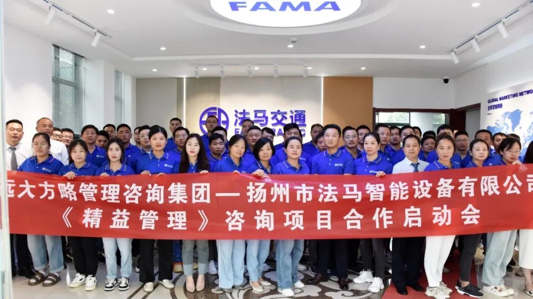 揚(yáng)州市法馬智能設(shè)備有限公司(以下簡稱“法馬交通”)攜手遠(yuǎn)大方略啟動(dòng)《精益管理》咨詢項(xiàng)目。優(yōu)化生產(chǎn)管理流程,提升工作效率,降低綜合成本,增強(qiáng)核心競(jìng)爭力。