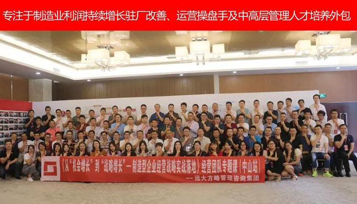 2018年6月29日~6月30日由遠大方略專業(yè)師資團隊打造的《從“機會增長”到“戰(zhàn)略增長” ——制造型企業(yè)經(jīng)營戰(zhàn)略實戰(zhàn)落地》課程在中山怡景假日酒店舉行,現(xiàn)場聚集了100+制造業(yè)各大企業(yè)家/CEO,企業(yè)管理者,一起復盤剖析企業(yè)的戰(zhàn)略部署。