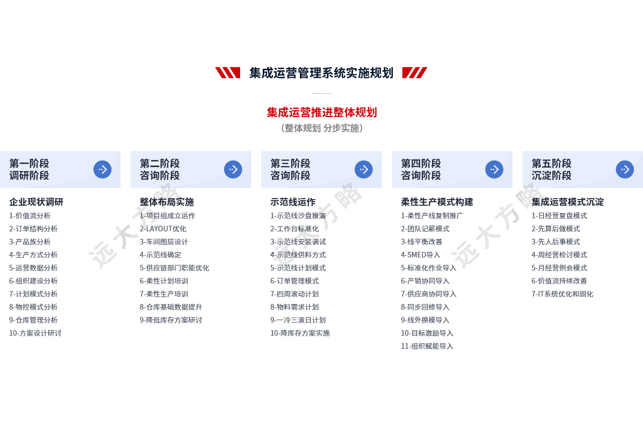 2、輔導(dǎo)模塊:推行卓越運營管理,主要圍繞經(jīng)營管理中心建立、計劃信息鏈與組織運作信息鏈構(gòu)建、精益生產(chǎn)模式優(yōu)化等